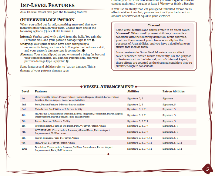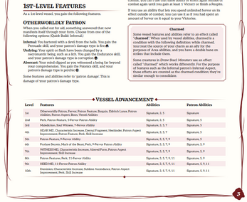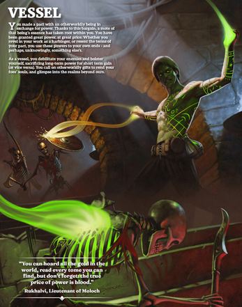 As a Vessel, you debilitate your enemies and bolster yourself, sacrificing long-term power for short term gain (or vice versa). You call on otherworldly gifts to rend your foes’ souls, and glimpse into the realms beyond ours.